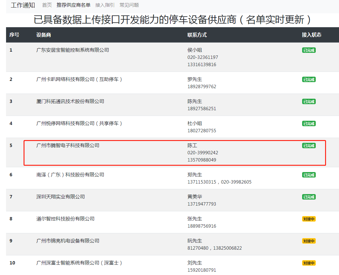 廣州市騰智電子科技有限公司被市交通運輸局列為推薦供應商名單